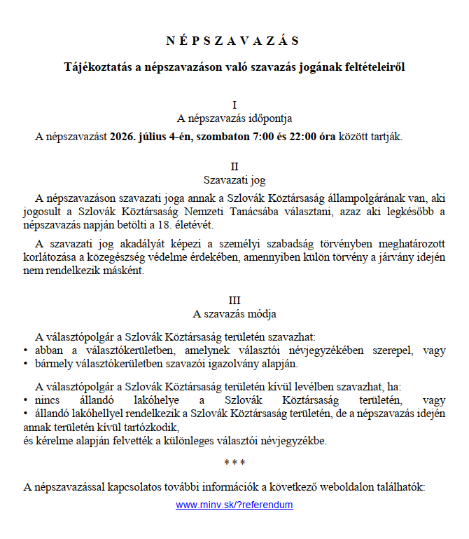 Tájékoztatás a népszavazáson való szavazás jogainak feltételeiről